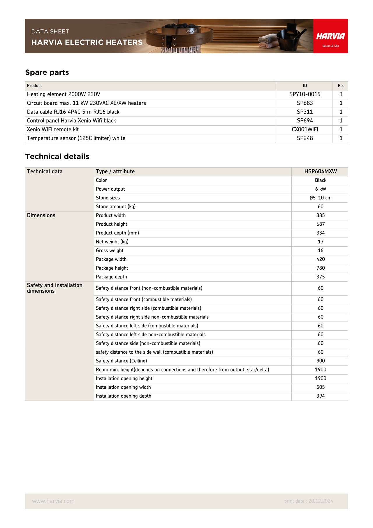 商品 :HARVIA SPIRIT SP60