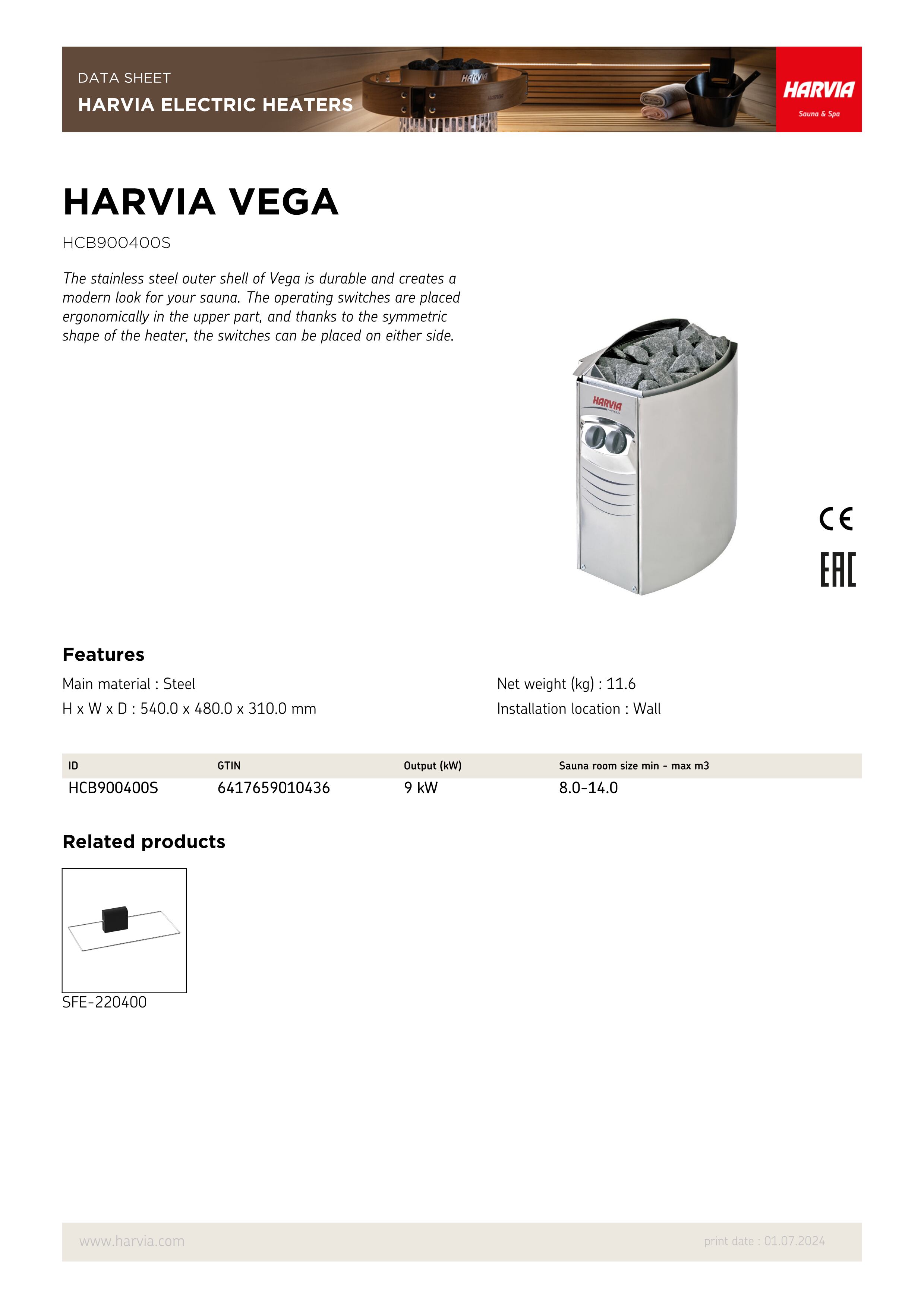 [送料込]Harvia サウナストーブVEGA BC90 9.0kW ハルビア